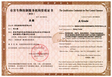 国家A级”有 害生物防制服务机构资质”National A-class qualification